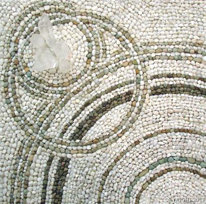 Natural river pebbles, and quartz crystals.